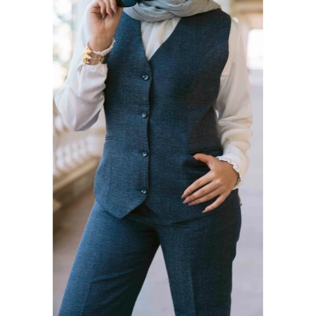 Fit: The “Elin” is designed for a flattering, streamlined fit. The straight-leg pants provide a sophisticated vertical line, while the sleeveless vest offers a structured drape that stays crisp throughout the day. This versatile set is engineered to move with you—transitioning effortlessly from a high-pressure Work Environment to an elegant Evening Event or Family Celebration.