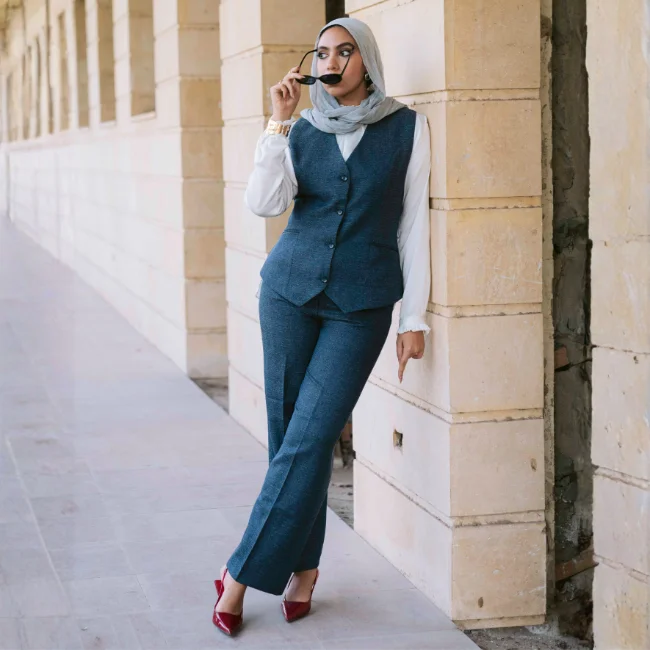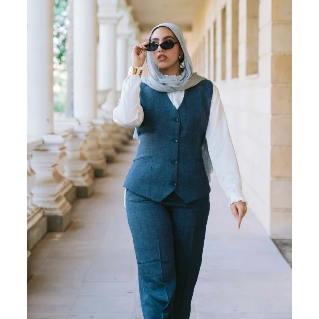 The Elin Suit captures the essence of the latest global trends in modest fashion. It is a contemporary take on the “Power Set,” designed for the woman who stays ahead of the curve. This suit blends architectural sharpness with the organic feel of linen, making it a “must-have” for a modern, high-end wardrobe.